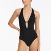 Women’s One Piece Swim Jetset Plunge One Piece – Mineral