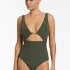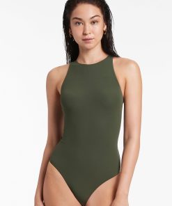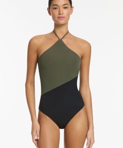 Jets Women’s One Piece Swim Versa High Neck Halter One Piece – Olive/black