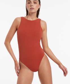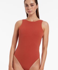 Jets Women’s One Piece Swim Isla Rib High Neck One Piece – Russet