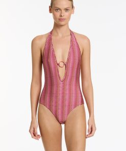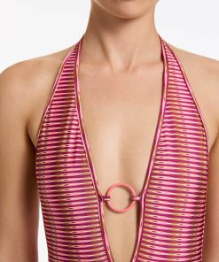 Jets Women’s One Piece Swim Alessia Geo Plunge One Piece – Peony