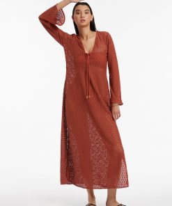 Jets Women’s Resortwear Sereno Ditsy Long Sleeve Maxi Dress – Coral