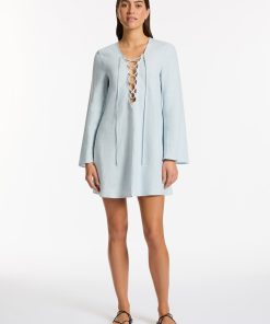 Jets Women’s Resortwear Zarla Tie Front Mini Cover Up – Pebble | Pebble