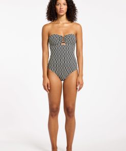 Jets Women’s Resortwear Spring Geo Bandeau One Piece | Black