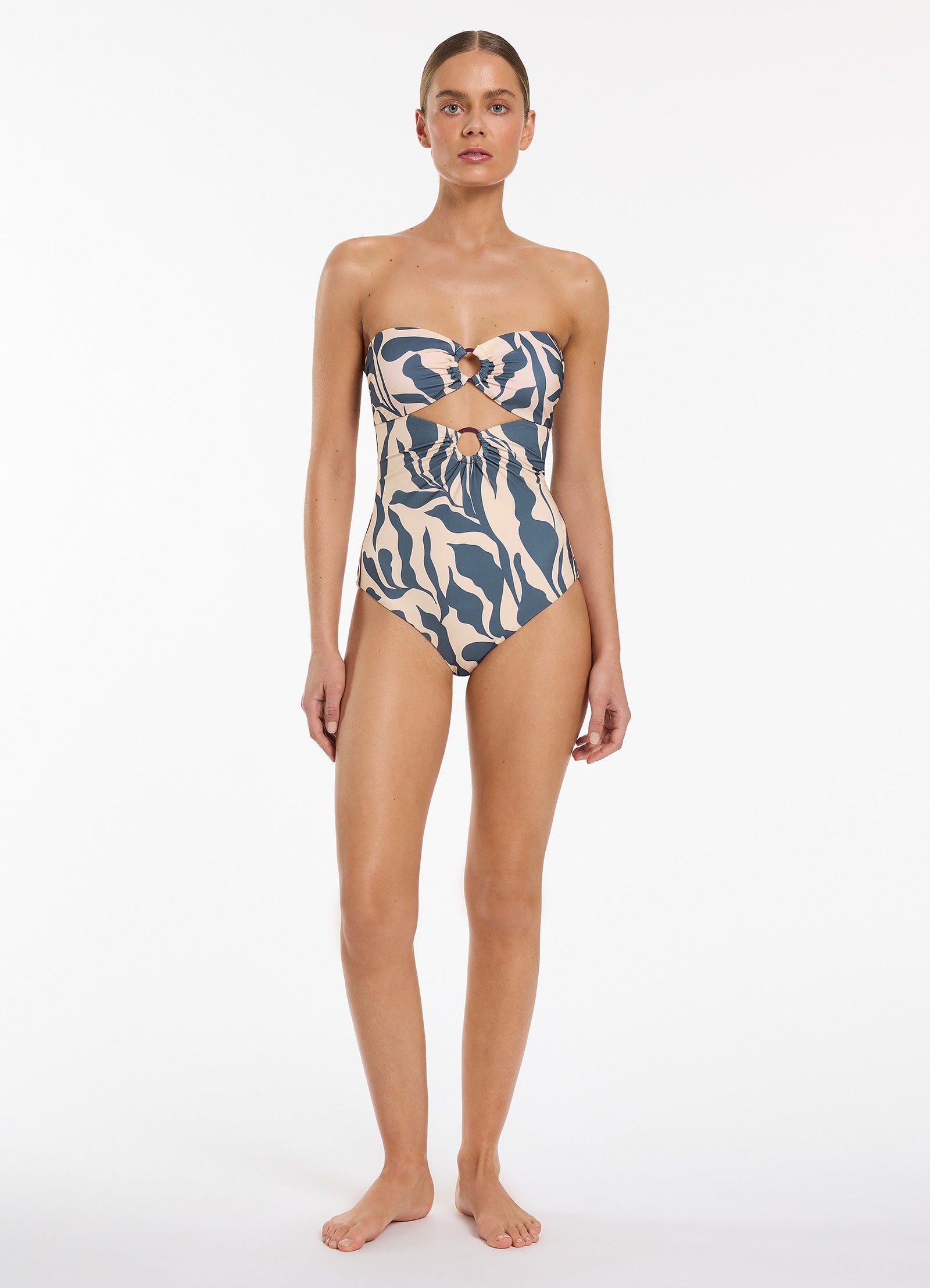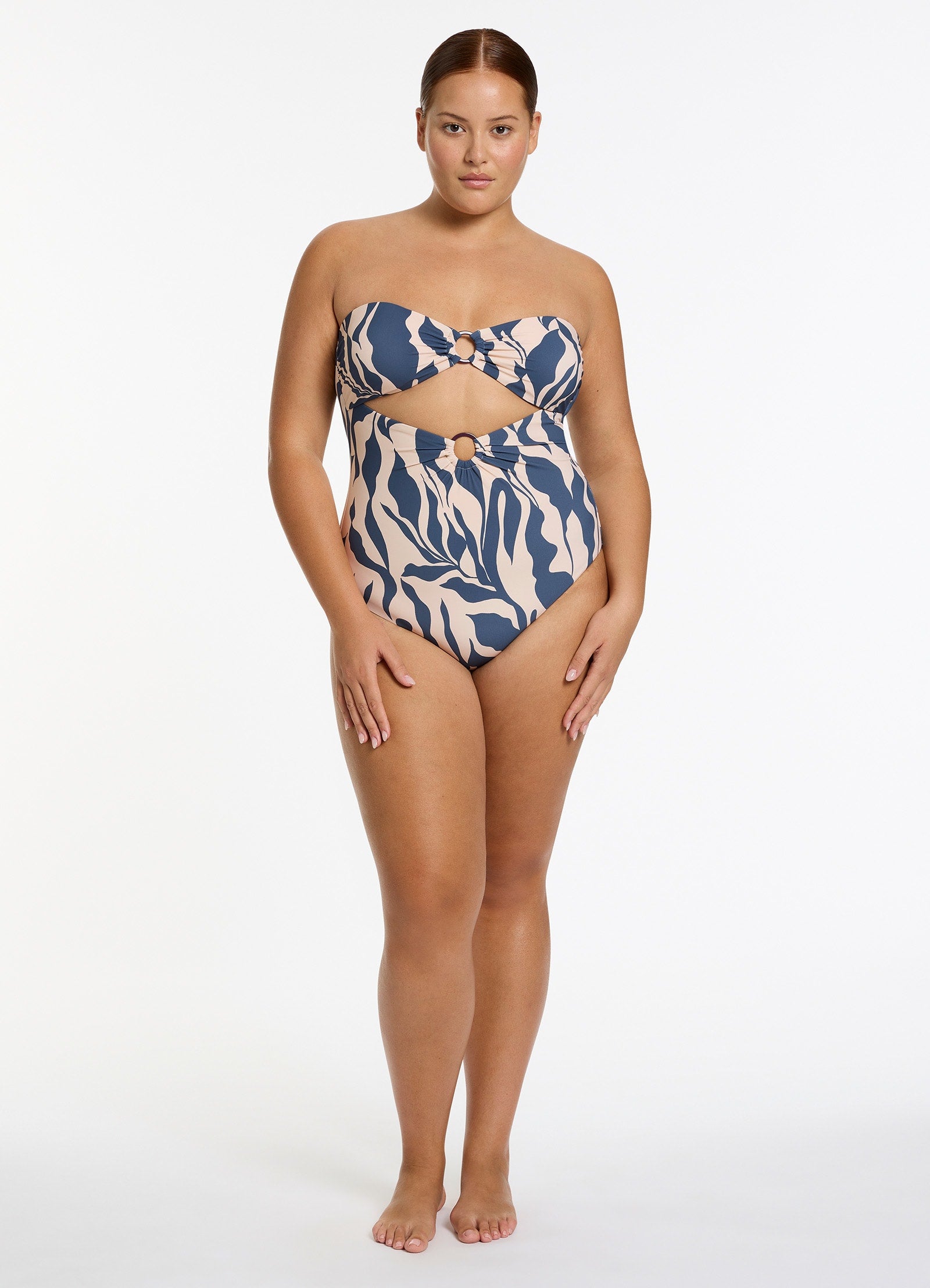 Jets Women’s Black Swimwear Sereno Cut Out Bandeau One Piece – Steel Blue