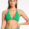 Jets Women’s Isla Rib Halter Triangle Bikini Top – Green