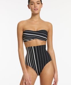 Jets Women’s Lunar Stripe Minimal Bandeau Bikini Top – Black/chalk