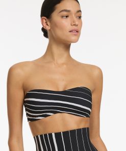Jets Women’s Lunar Stripe Minimal Bandeau Bikini Top – Black/chalk