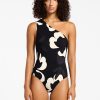 Jets Women’s One Piece Swim Cactus Garden One Shoulder One Piece | Black