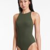 Jets Women’s One Piece Swim High Neck One Piece – Olive
