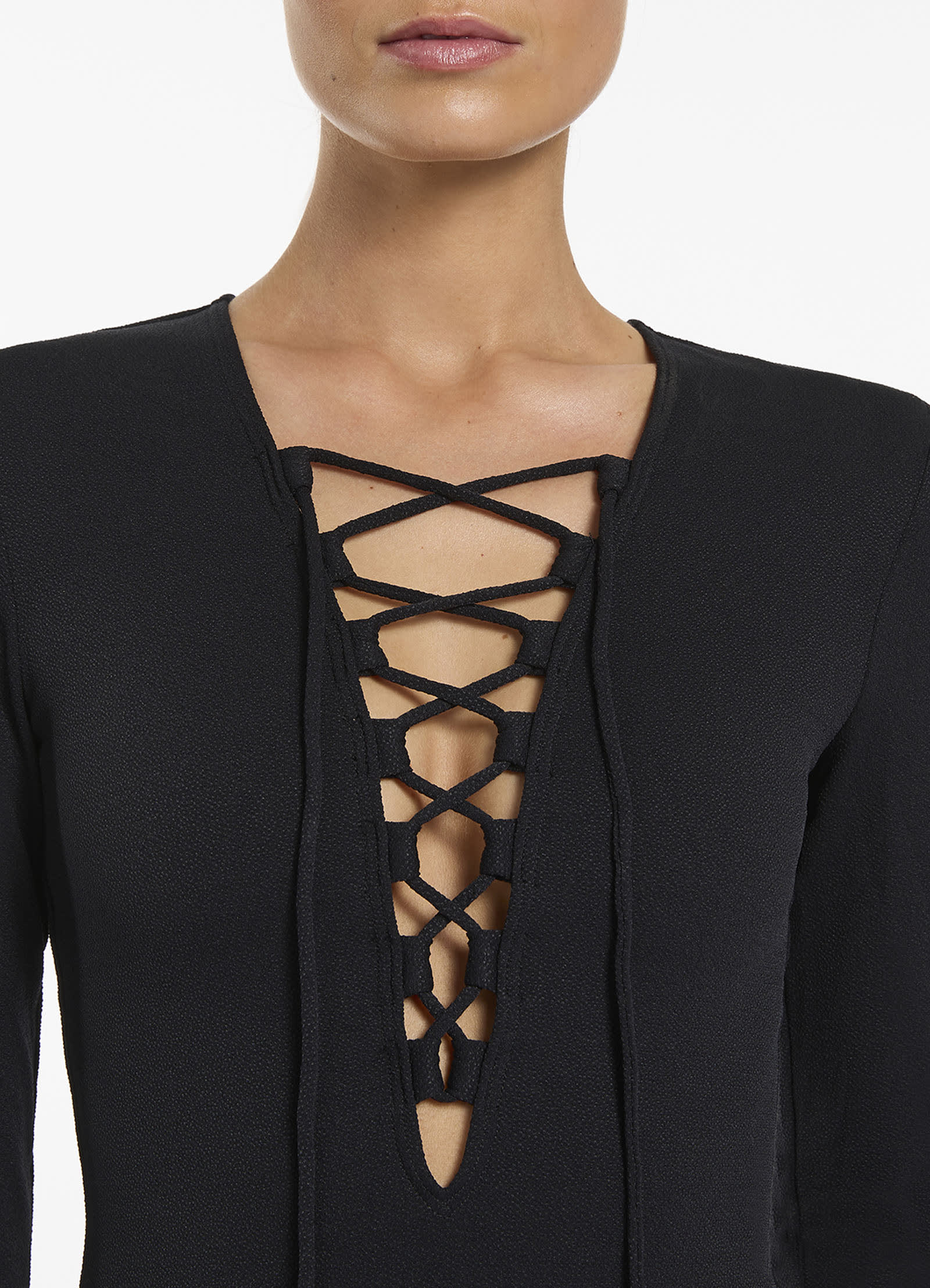 Jets Women’s One Piece Swim Joali Tie Front Plunge Surfsuit – Black