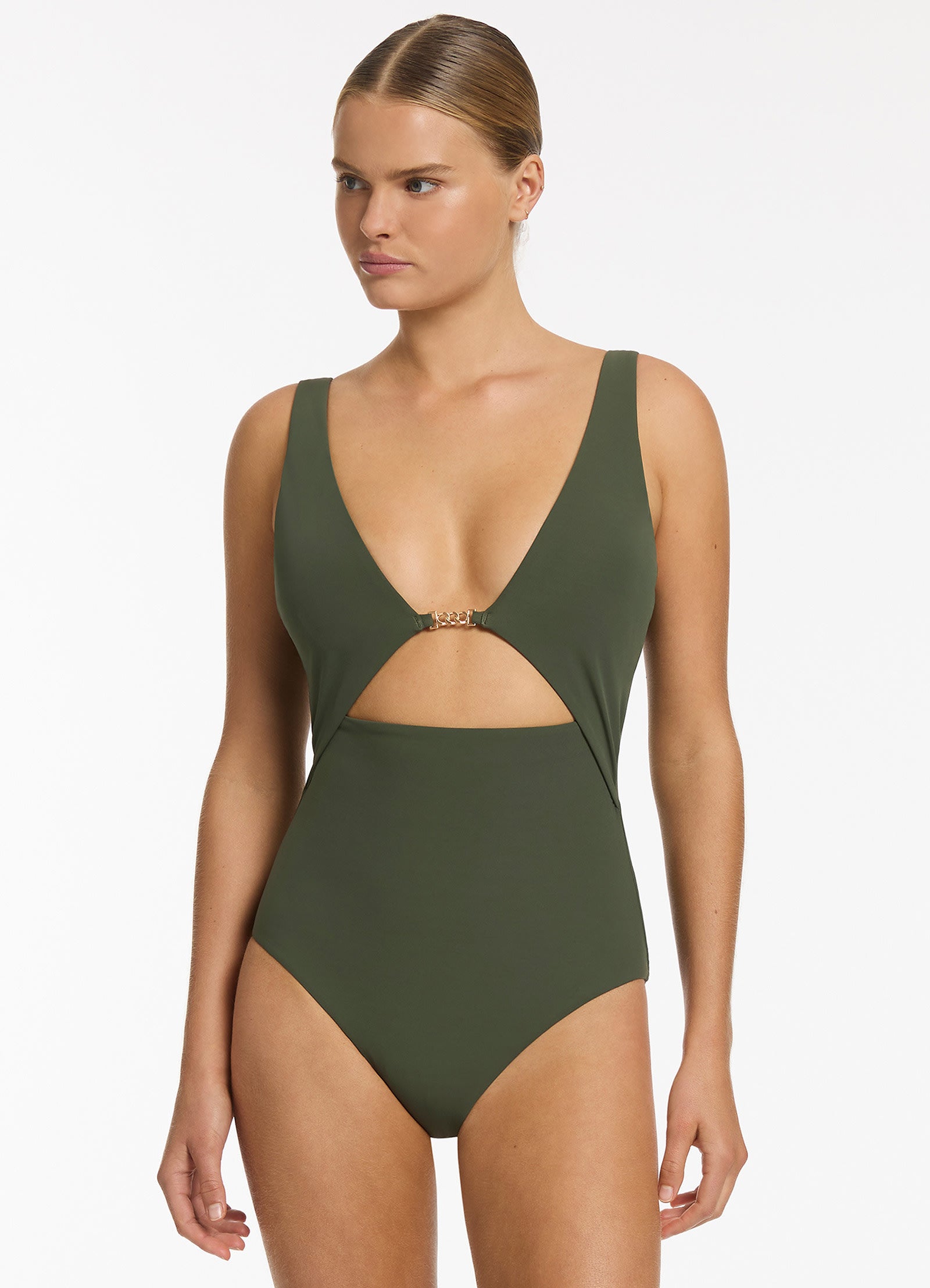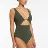 Jets Women’s One Piece Swim Lien Plunge One Piece – Olive