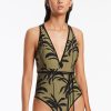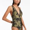 Jets Women’s One Piece Swim Palme Plunge One Piece – Olive