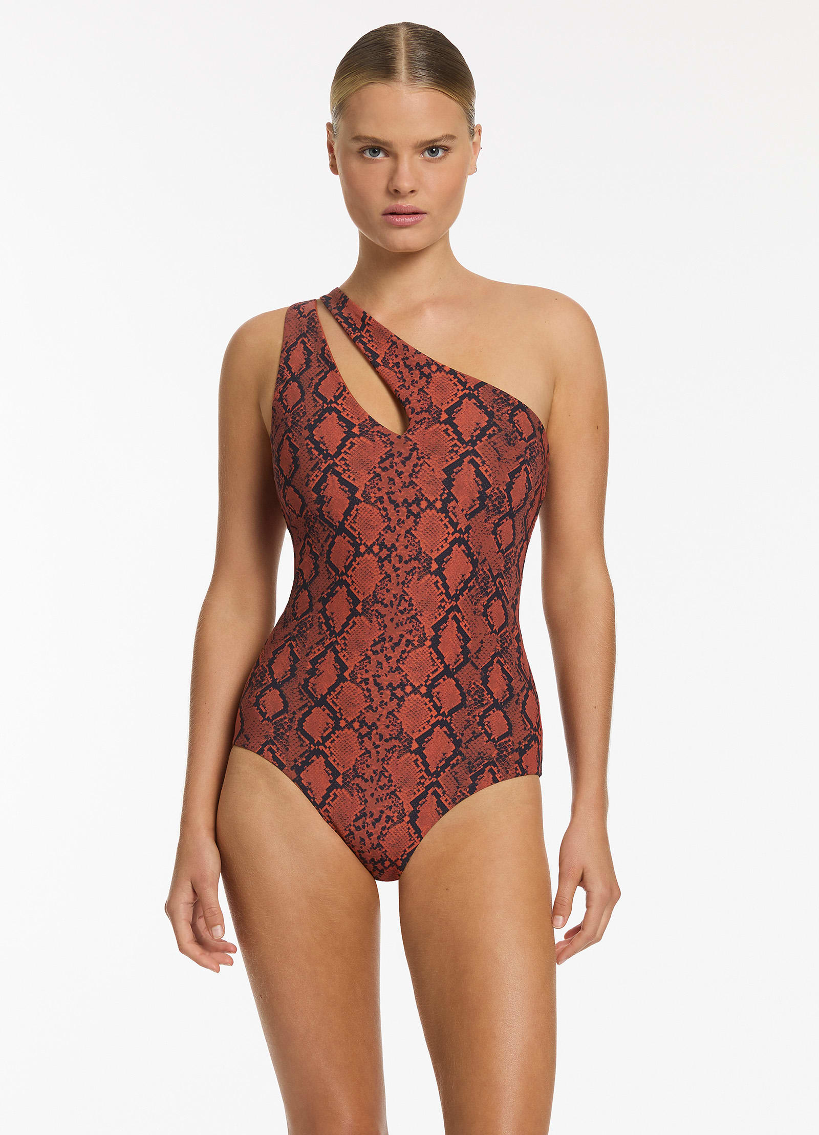 Jets Women’s One Piece Swim Python Splice One Shoulder One Piece – Spice