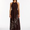 Jets Women’s Resortwear Dahlia Palm Embroidered Mini Kaftan – Chocolate | Chocolate