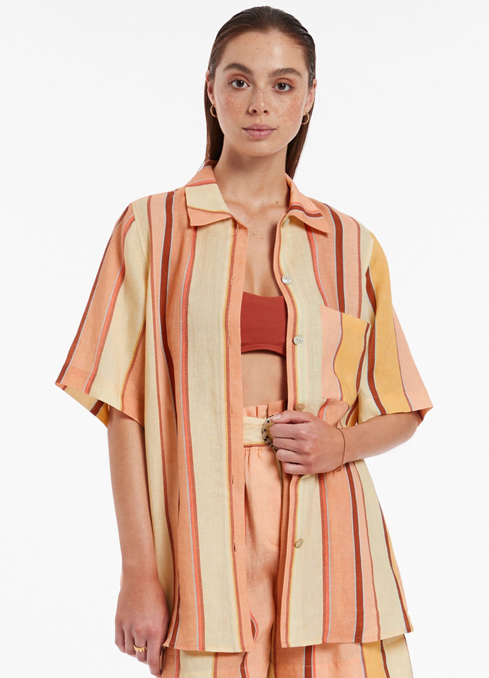 Jets Women’s Resortwear Fira Stripe Short Sleeve Shirt – Marigold