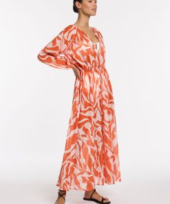 Jets Women’s Resortwear Sereno Ditsy Long Sleeve Maxi Dress – Coral