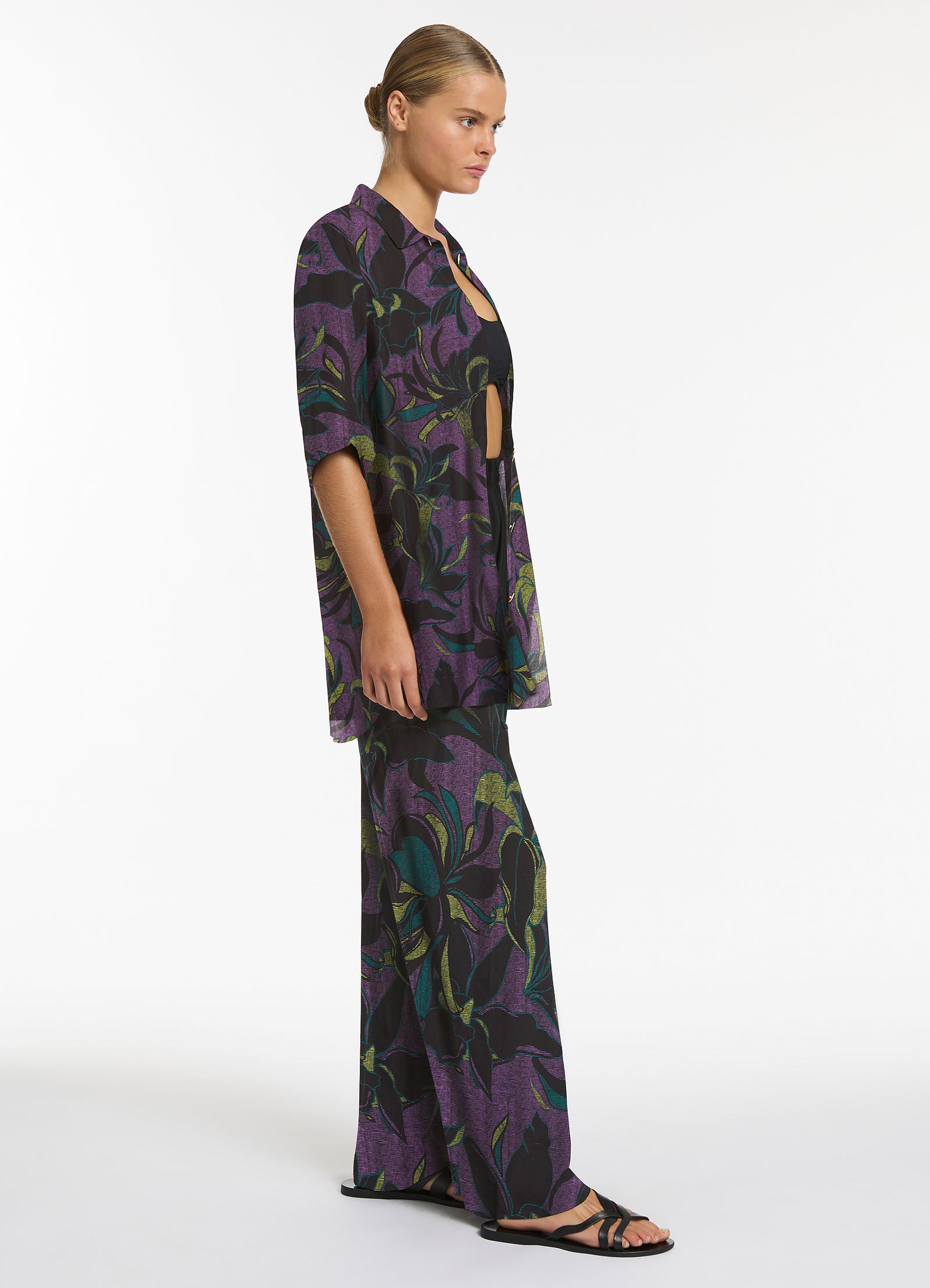 Jets Women’s Resortwear Midnight Tropical Short Sleeve Shirt – Amethyst