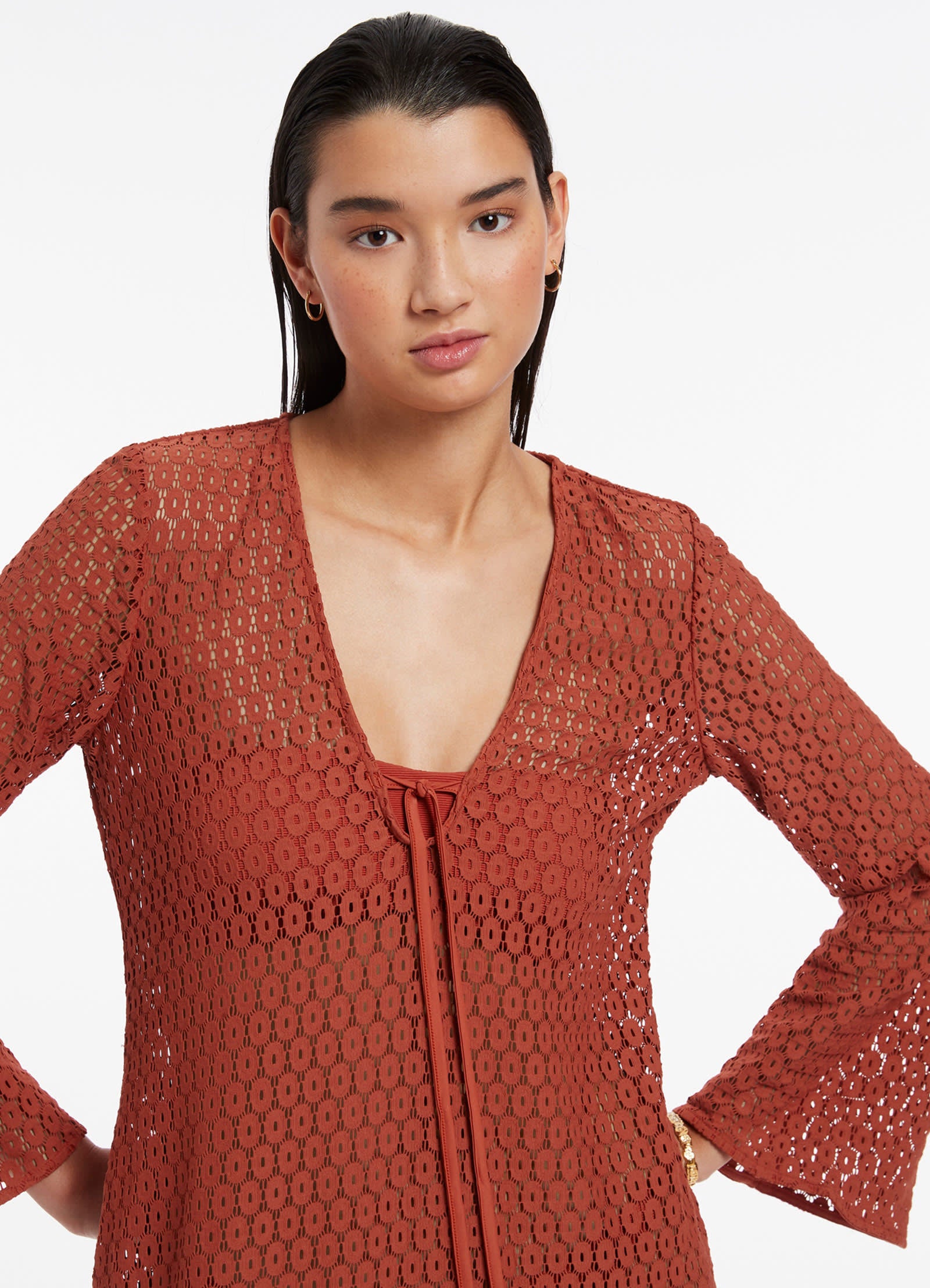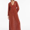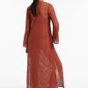 Jets Women’s Resortwear Stretch Lace Maxi Kaftan – Russet