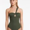 Women’s One Piece Swim Jetset Gather One Shoulder One Piece – Olive