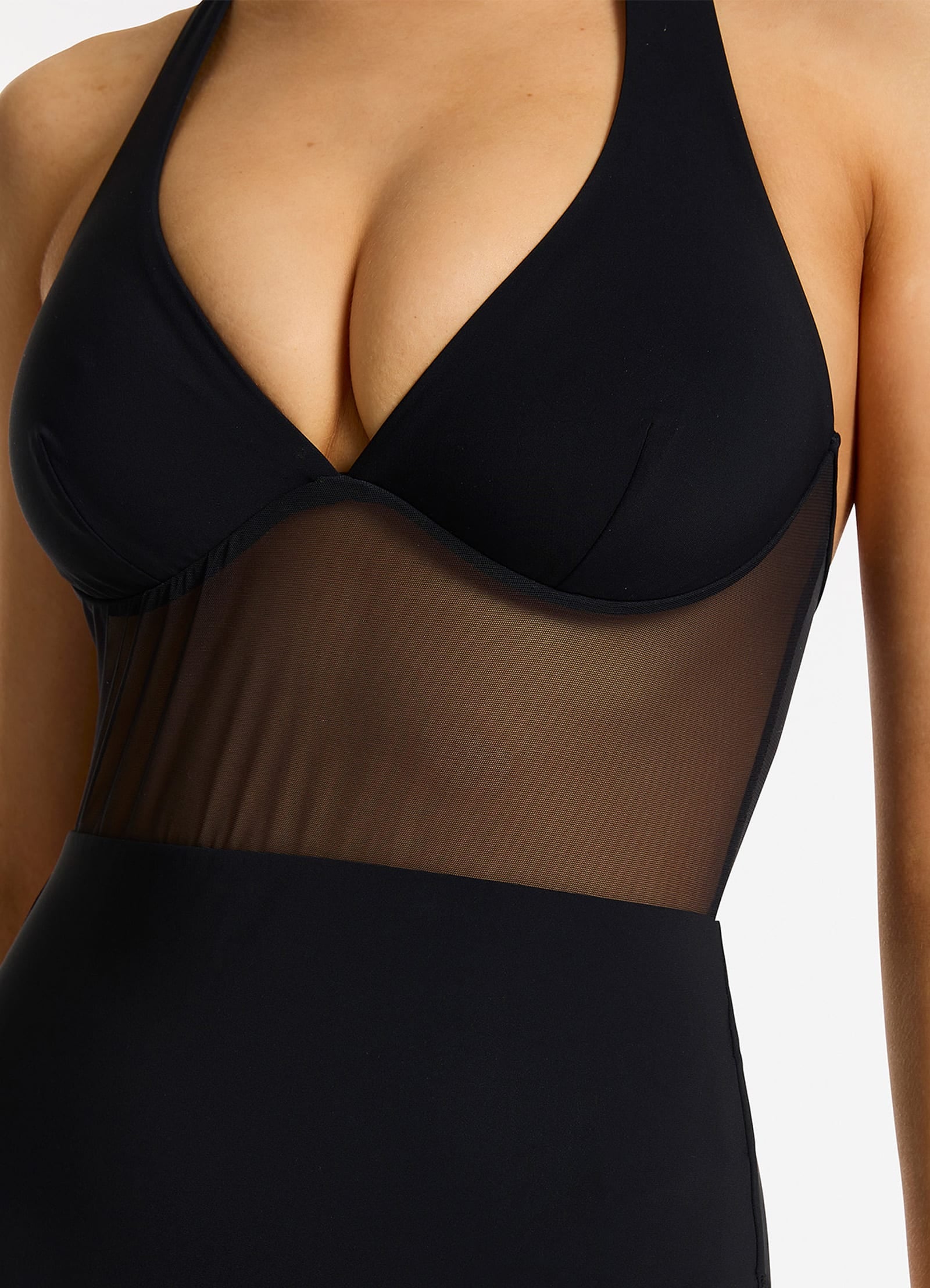 Women’s One Piece Swim Jetset Lure Plunge Halter One Piece – Black