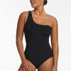 Women’s One Piece Swim Jetset One Shoulder One Piece – Black | Black