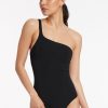 Women’s One Piece Swim Jetset One Shoulder One Piece – Black