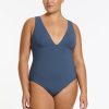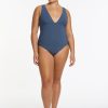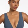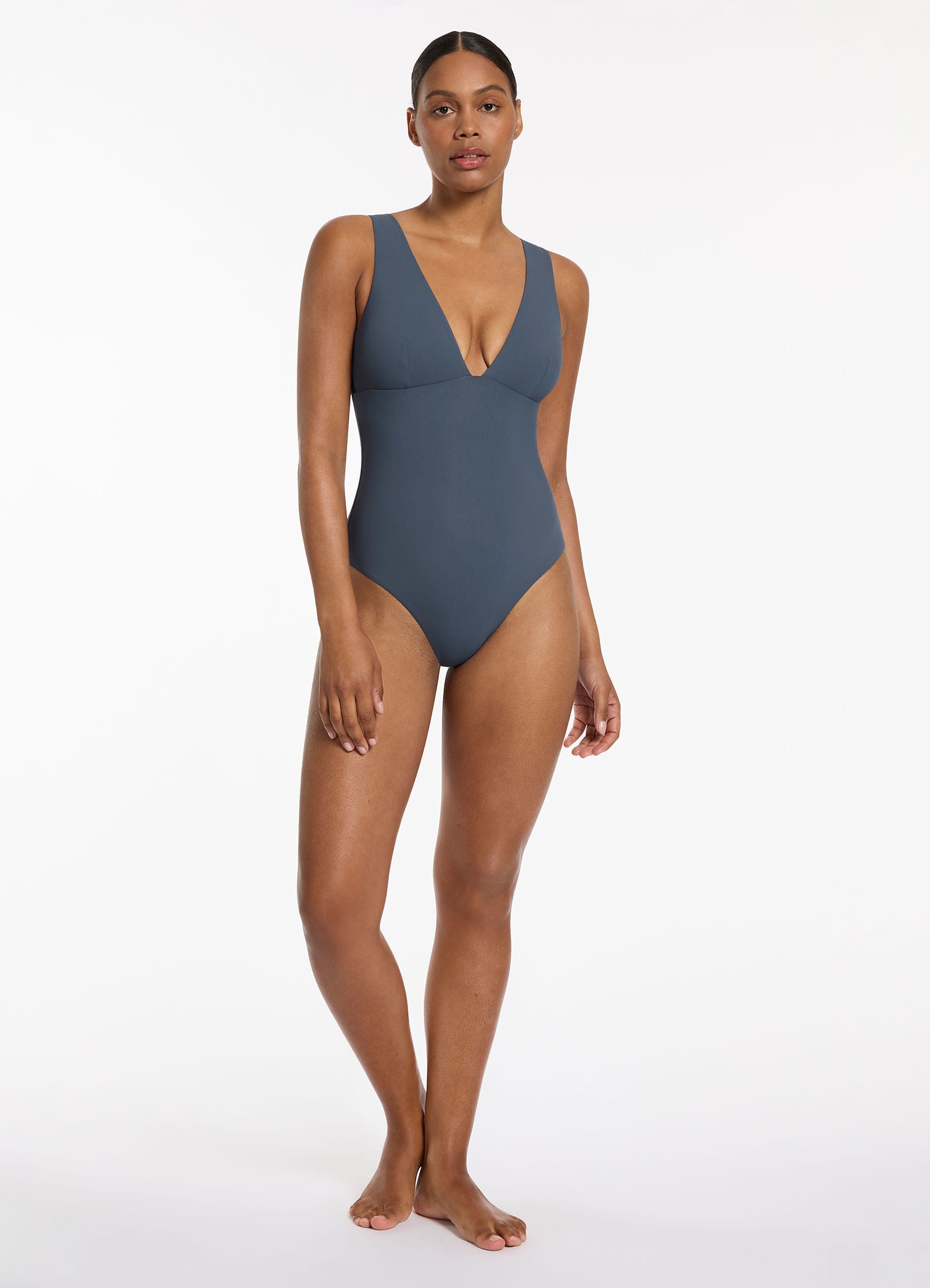 Women’s One Piece Swim Jetset Plunge One Piece – Steel Blue