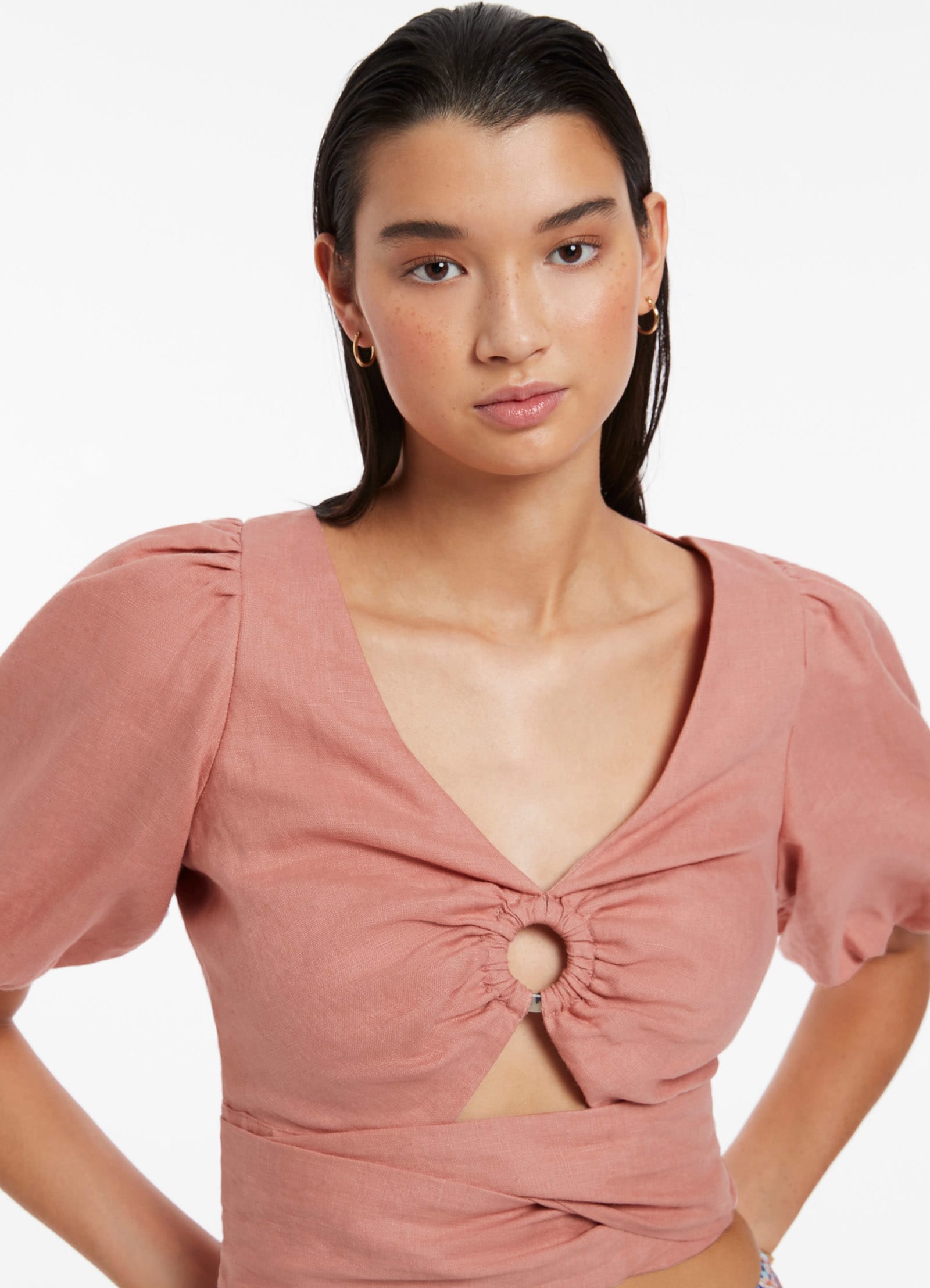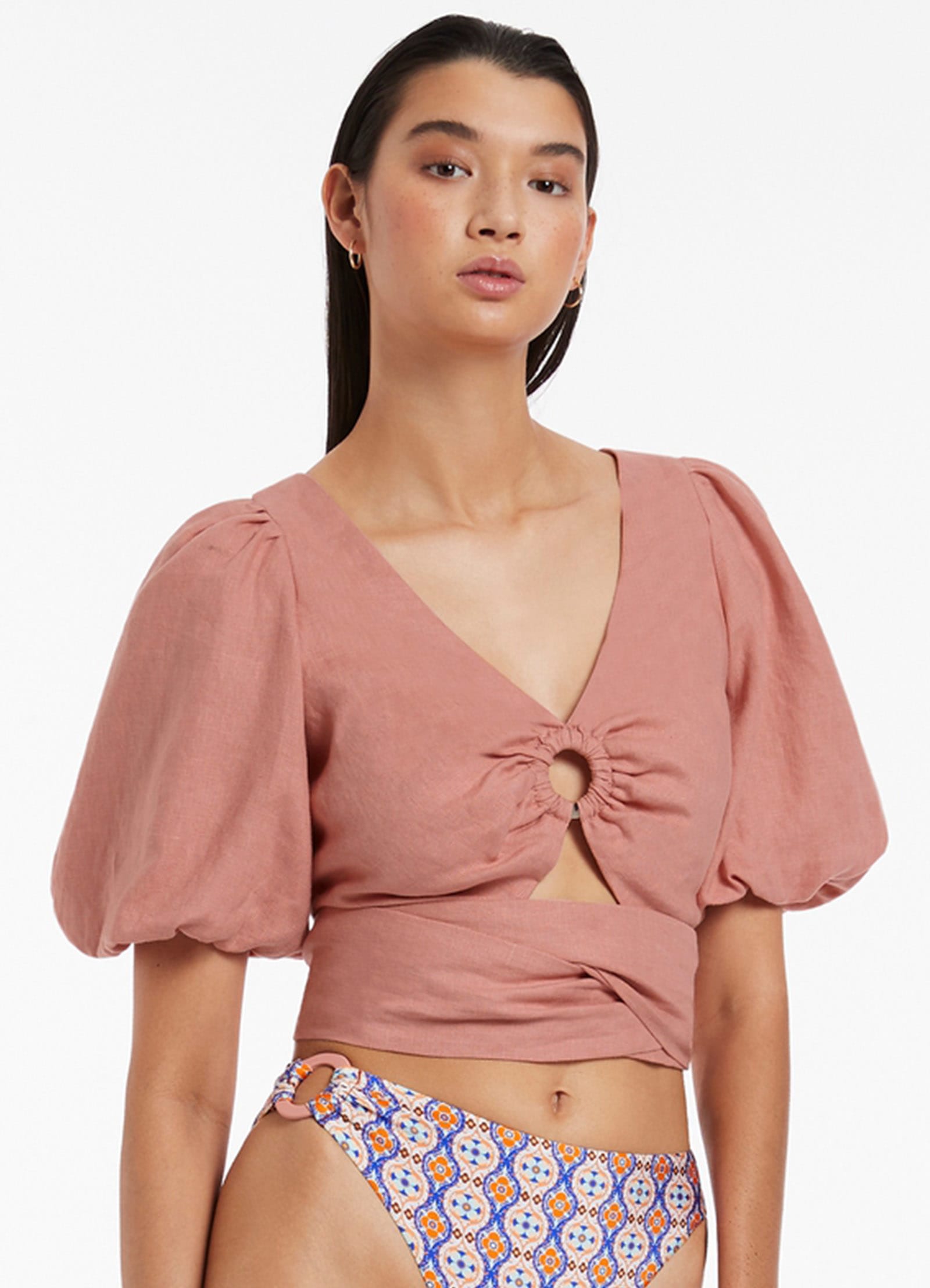 Women’s Resortwear Jetset Puff Sleeve Top – Musk
